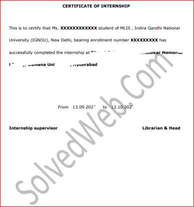 IGNOU MLIS Internship MLII 105 Report Paid Buy